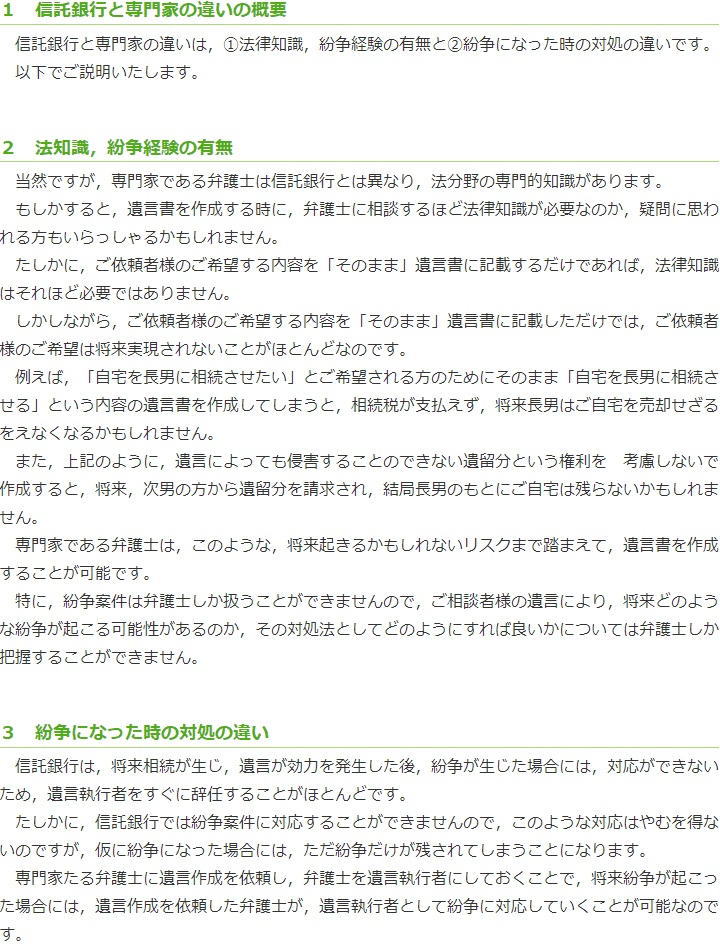 信託銀行と専門家の違い